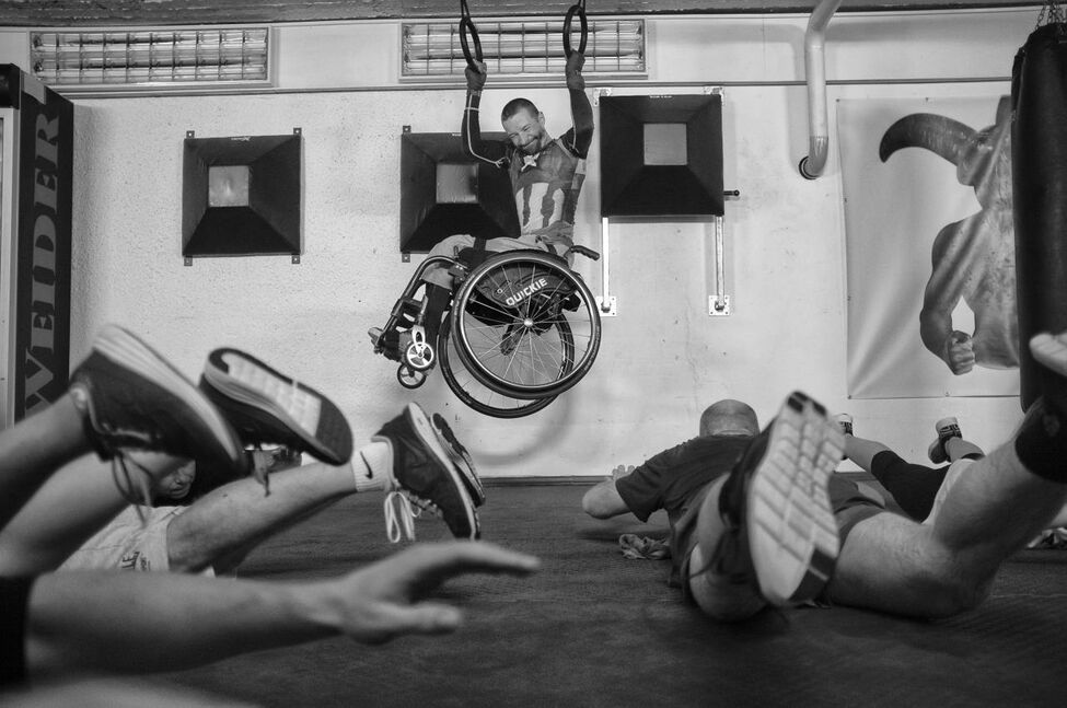 Le foto ritraggono non solo un uomo che lotta con se stesso, ma che lo fa senza bisogno di attenzioni.