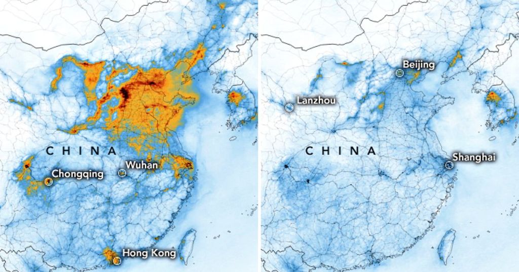I livelli di biossido di azoto, per lo più emesso da automobili e industrie, sono calati da Gennaio fortemente su Wuhan, la zona primaria, per poi abbassarsi su tutto il territorio cinese….