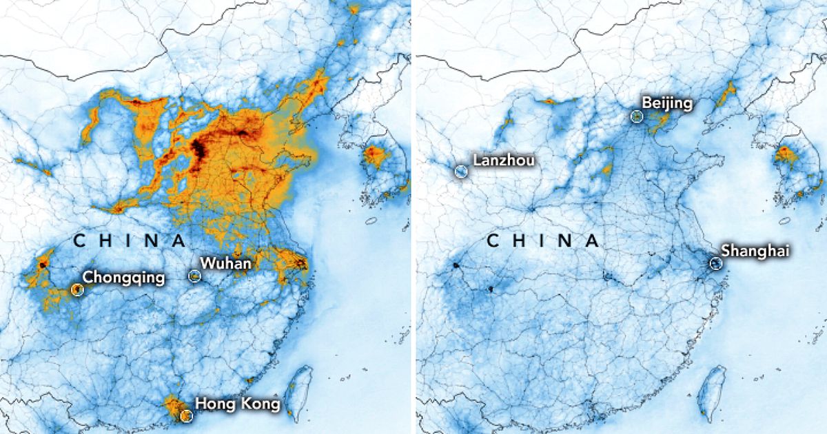 Le immagini satellitari dei satelliti di Nasa ed Esa hanno mostrato un enorme e imprevisto calo dei livelli di inquinamento sulla Cina, dovuto “in parte” al Coronavirus, con le sue quarantene e paure.